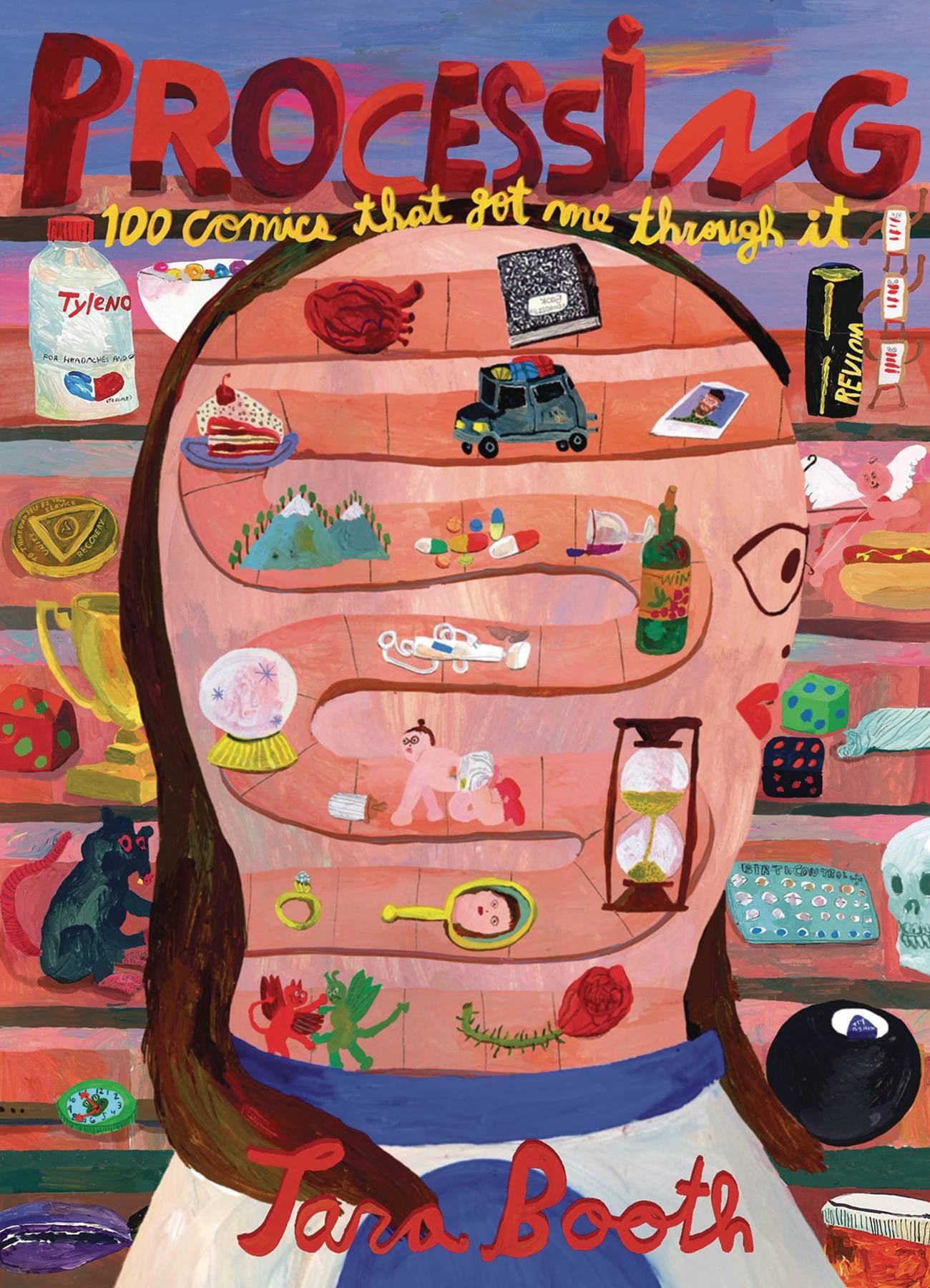 Part advice column and exhibit, exploration of psychic pollution and tranquility, Processing is-quite simply-intrepid: in its honesty; its unapologetic grossness; its unrivaled and frank portrayal of life with a body that bleeds. In the grand tradition of underground women cartoonists like Julie Doucet and Aline Kominsky-Crumb, Booth draws a horned up woman laying rose petals on the bed, to distract from the bedbugs before her hookup arrives. She bears witness to the reality of wearing a t-shirt with no bra-when you stretch, your boobs, sometimes, pop right out. This is all just life but we don't often see it on the page. With color that vibrates and fluids that impose, Processing lays Booth bare-literally and figuratively.